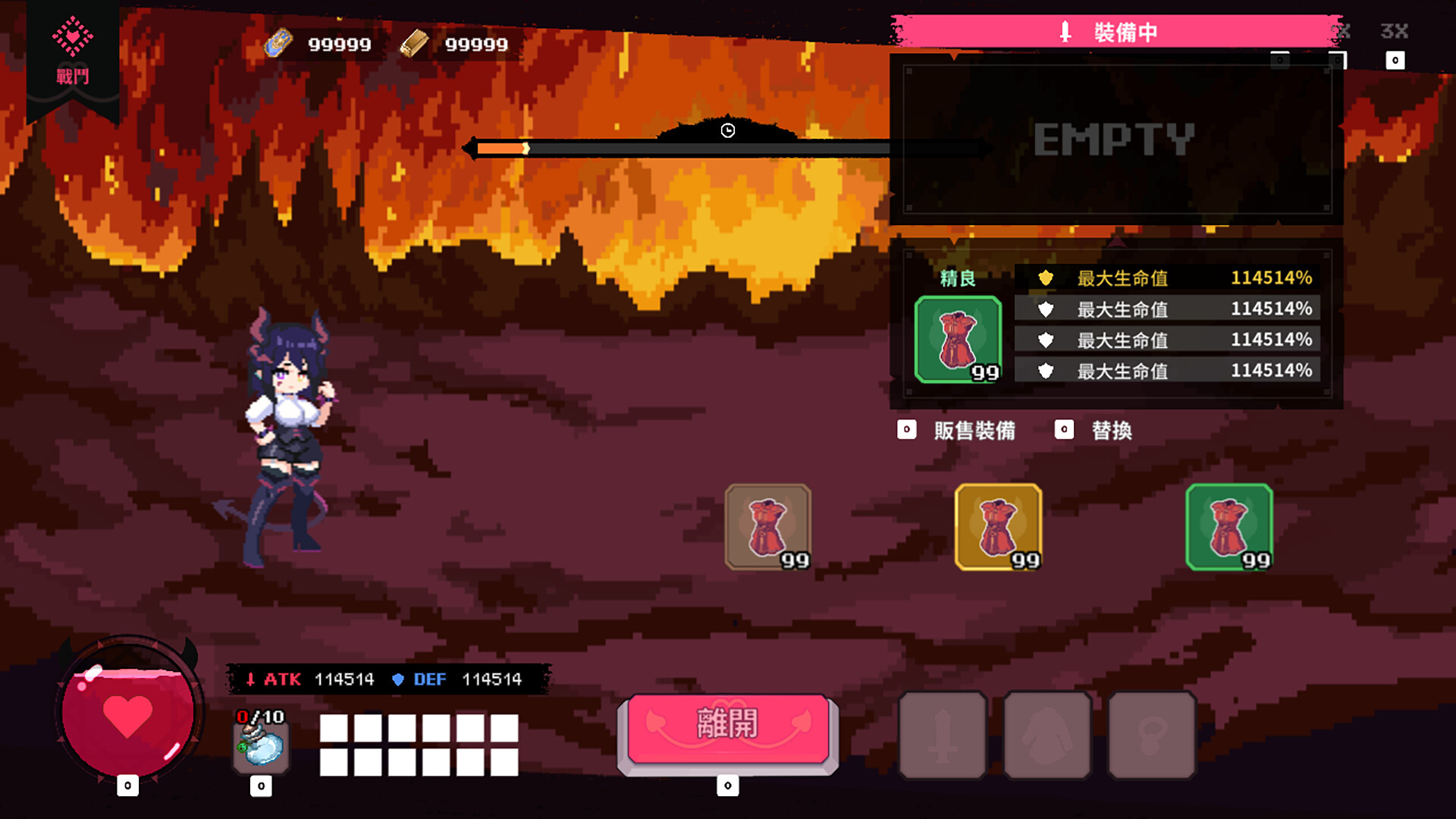 Conquer all 18 layers of hell and seduce every demoness commander you meet!
